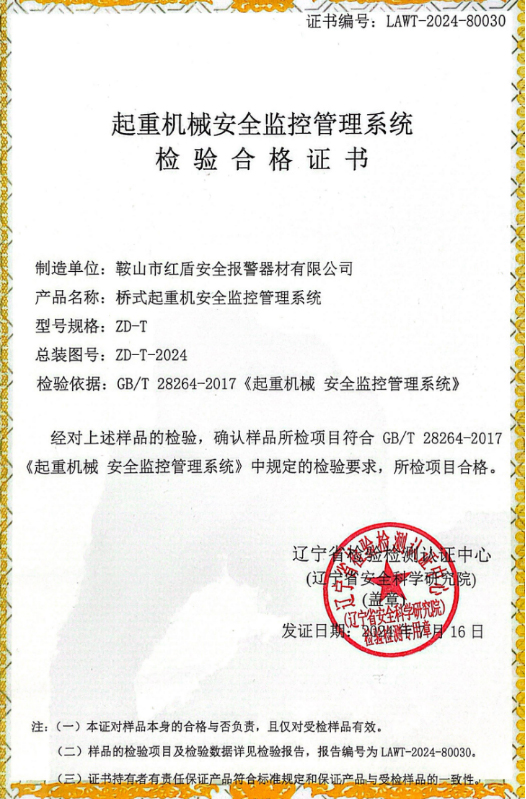 起重機(jī)安全監(jiān)控管理系統(tǒng)檢驗(yàn)合格證書(shū)